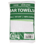 Quick view sku: scp107BRTGNS Cotton Bar Towel - 12/Pack-16" x 19" Green -Striped 32 oz. 100% This Choice 16" x 19" green-striped cotton bar towel is perfect for countless uses in your restaurant or bar. When talking towels, function comes first, and this Choice 16" x 19" cotton green-striped bar towel doesn't disappoint! With superior durability... MSRP: Now: $16.99 Add to Cart Compare Quick view sku: scp007BRT24 Cotton Ribbed Terry Bar Towel - 12/Pack-16" x 19" White -24 oz. 100% Keep your bar, kitchen, or other foodservice facility clean, with this Choice 16" x 19" white 24 oz. ribbed terry bar towel. Featuring a quality design with smooth, clean stitching, this white bar towel ensures dependable use, every time. It weighs 32 oz... MSRP: Now: $10.99 Add to Cart Compare Quick view sku: scp007BRT18 Cotton Ribbed Terry Bar Towel - 12/Pack-15" x 18 1/2" 18 oz.-White 100% Keep your bar, kitchen, or other foodservice facility clean, with this Choice 15" x 18 1/2" white 18 oz. ribbed terry bar towel. Featuring a quality design with smooth, clean stitching, this white bar towel ensures dependable use, every time. It weighs... MSRP: Now: $8.99 Add to Cart Compare Quick view sku: scp007KITCHTWEL Cotton Herringbone Dish Towel - 12/Pack-15" x 26" Blue-Striped 24 oz. 100% Hand wash your dishes in your restaurant with this durable and dependable Choice 15" x 26" blue-striped 24 oz. dish towel. Boasting a crisp, blue-striped color, this dish towel allows your staff to quickly identify it to avoid cross-contamination. Then... MSRP: Now: $12.99 Add to Cart Compare Compare Selected × OK